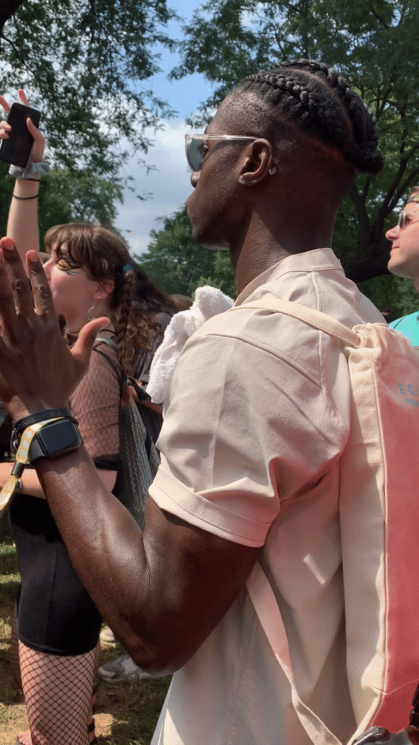 In order to pull off an organic activation, we hired a local artist to screen print custom canvas bags (you can see Devin wearing one on the right) and handed them out in the crowd.
